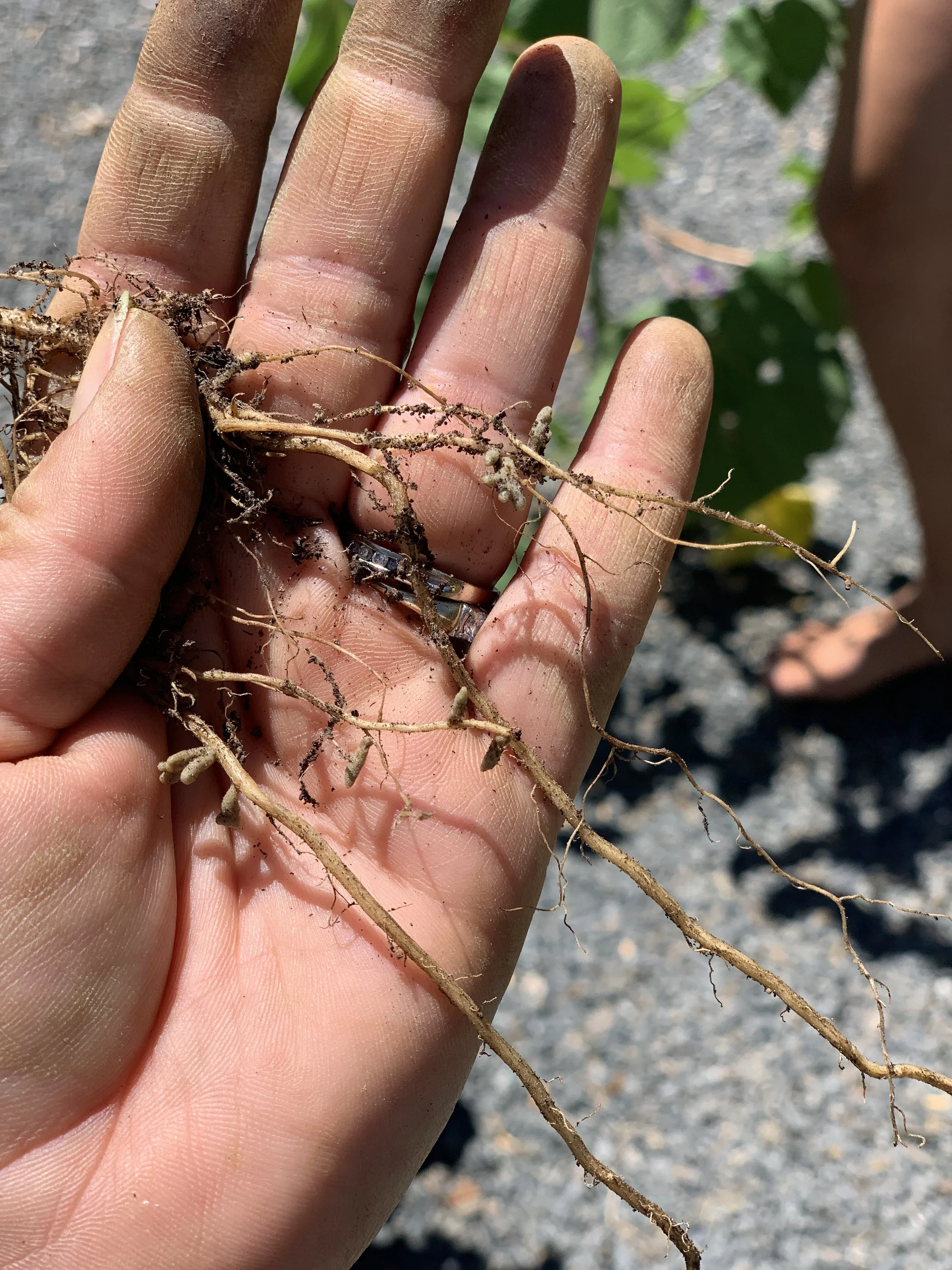 To witness this process yourself, pull out a pea or bean plant, shake off the soil, and look closely at the roots. You should see small, pale bumps along them. These are nitrogen-fixing nodules. If you don’t see them, it’s often a sign that something may be off in the soil. Compaction, disturbed soil biology, or excessive synthetic nitrogen can all prevent nodules from forming. When nitrogen is already abundant, the plant simply doesn’t maintain the partnership. If you’re interested in learning more, I highly recommend the Teaming series on organic growing by Jeff Lowenfels, who presents complex soil biology in an accessible and engaging way.
